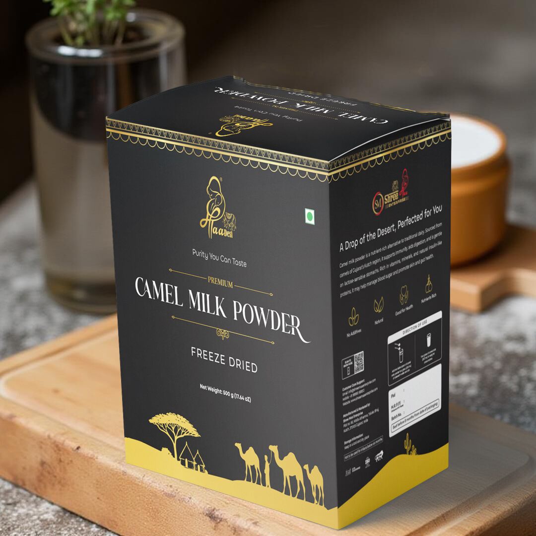 The Freeze-Dried Camel Milk Powder is made using an advanced process that preserves the milk’s full nutritional profile, making it a superior choice for health enthusiasts. Freeze-drying maintains higher concentrations of vitamins, minerals, and proteins than other methods, offering enhanced immune support, better digestion, and blood sugar control. Its creamy texture and subtle taste make it easy to incorporate into your daily diet—whether in beverages, cooking, or as a nutritional supplement. This powder is perfect for those who seek the best quality camel milk in a convenient form, retaining all the health benefits of fresh milk.